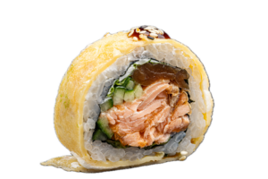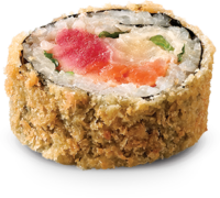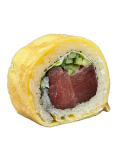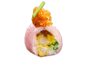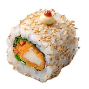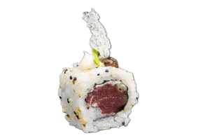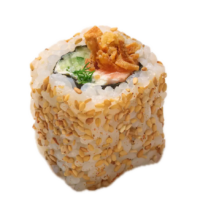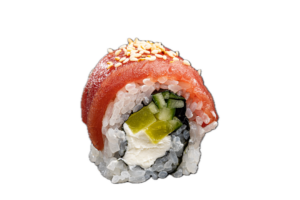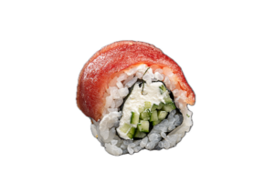 tuna/ cream cheese/ cucumber/ sessame seeds/ lettuce/ sriracha sauce