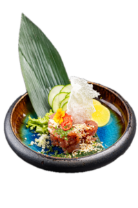 seabass/ avocado/ mango/ cream cheese/ kumquat/ rice crackers