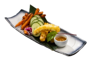 crispy pikeperch fishfingers/ sweet potato fries/ honey-nut sauce