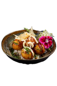 fried Japanese octopus balls/ katsuobushi/ mayo/ takayaki sauce