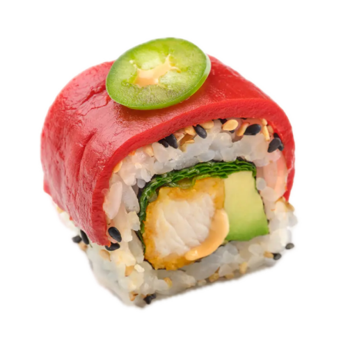 krewetka tempura/ mango/ awokado/ tuńczyk/ pikantne majo/ szczypior