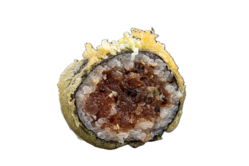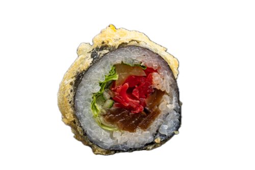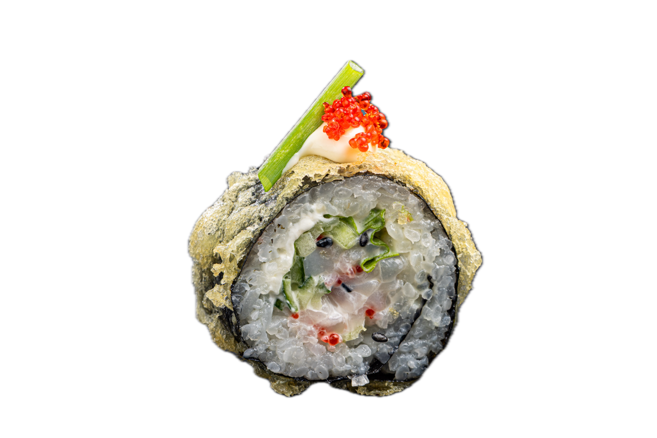 przegrzebki/ por/ ikra tobiko/ przyprawy/ tempura na zewnątrz