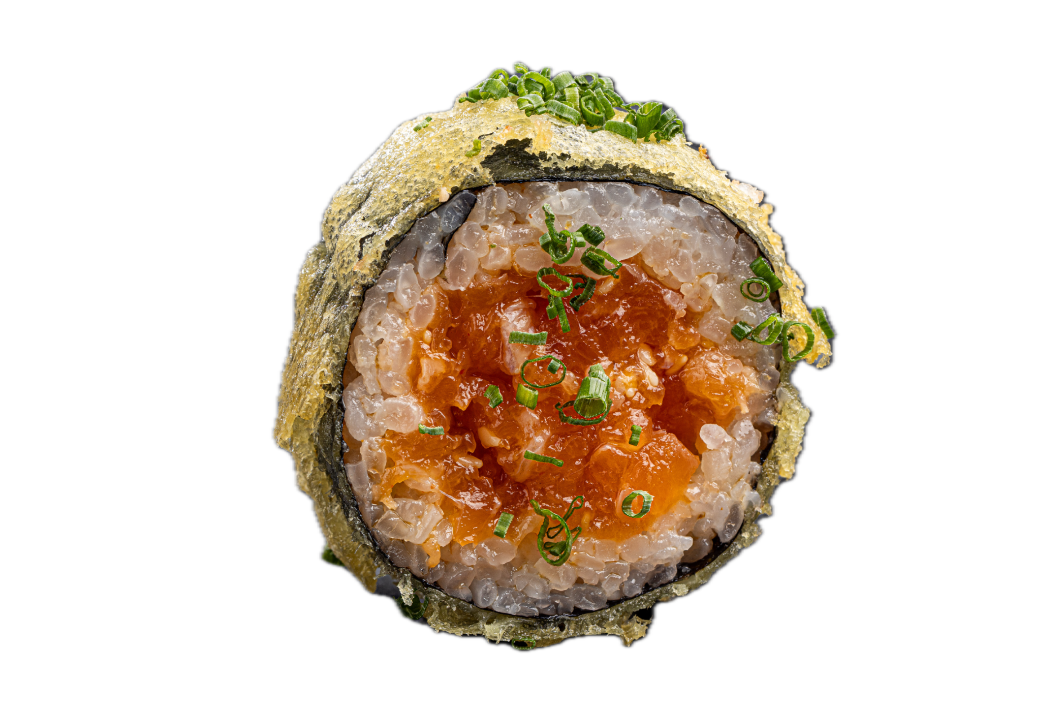 salmon tartare/ tempura outside/ chives