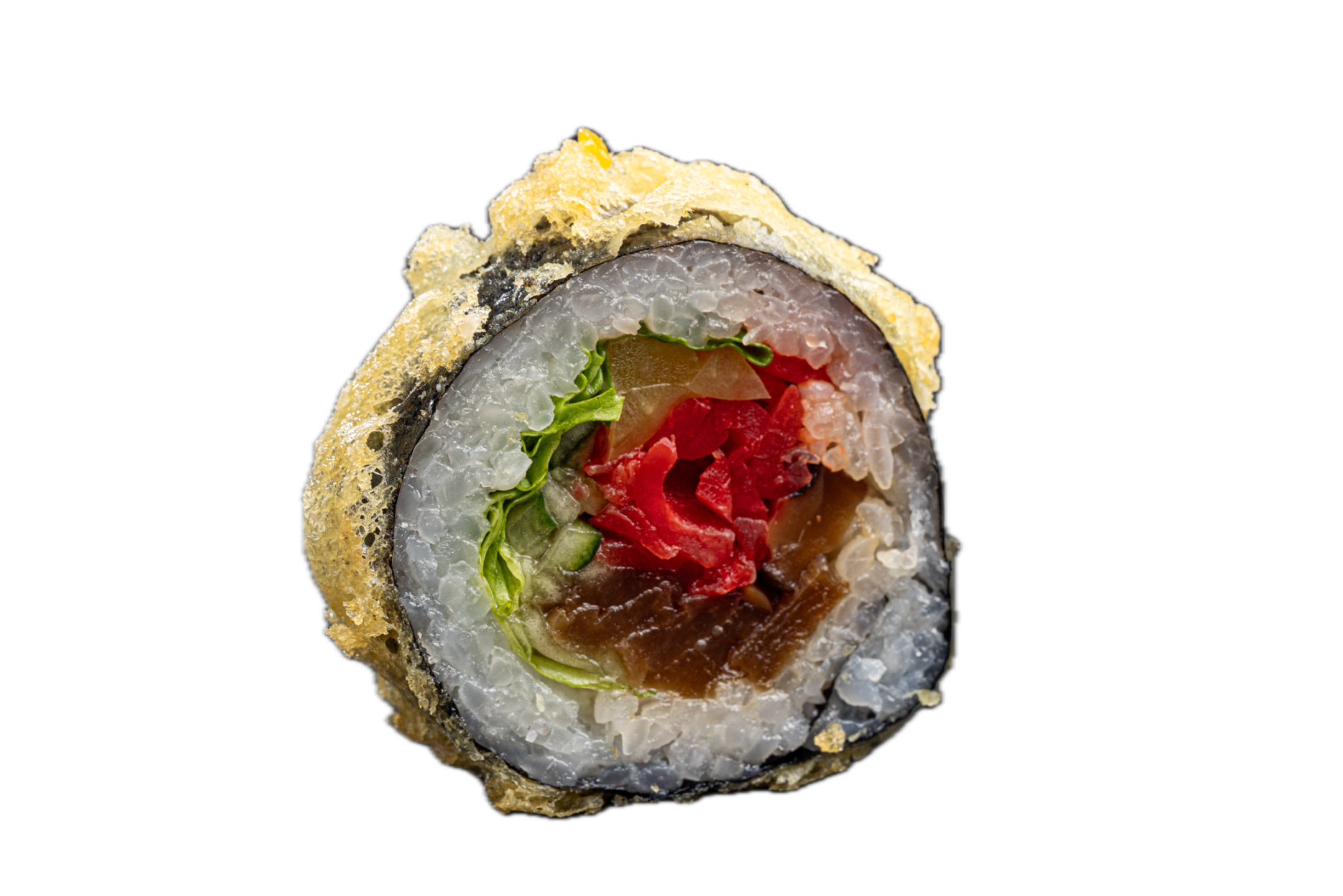 tykwa/ ogórek/ rzepa/ grzyby shiitake/ awokado/ fukujinzuke/ tempura z zewnątrz