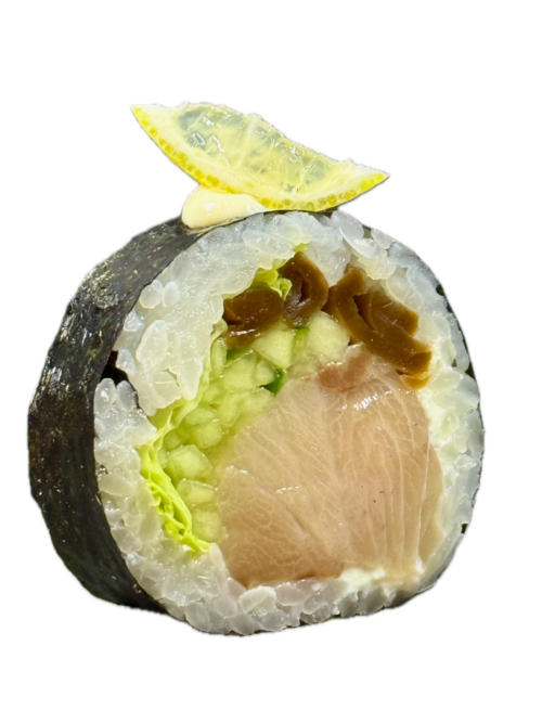 seabass/ avocado/ mango/ cream cheese/ kumquat/ rice crackers